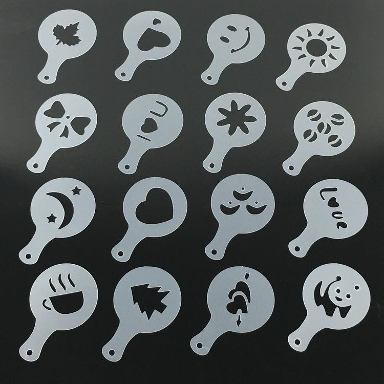 16 Pcs Plastic Garland Mold Fancy Coffee Model Thicken Coffee Milk Foam Spray Pattern Template