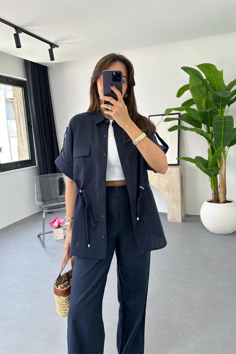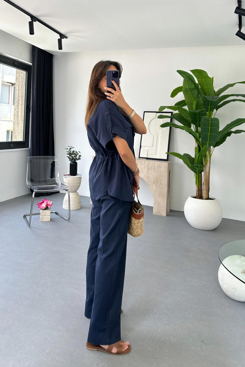 Casual Drawstring Top Trousers and Pants Two-piece Suit