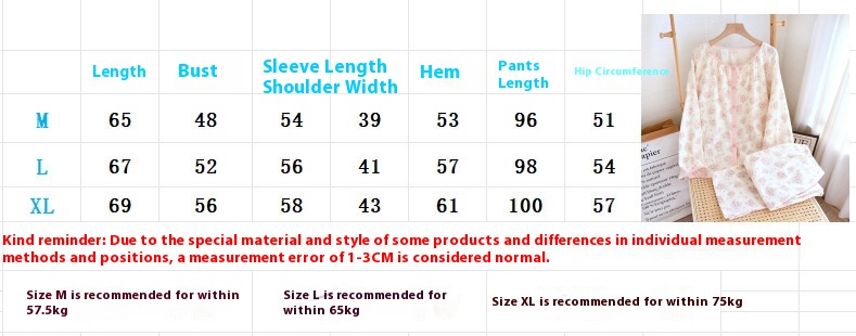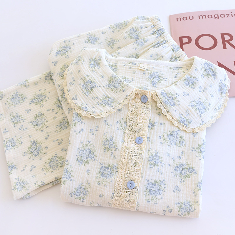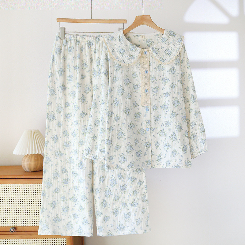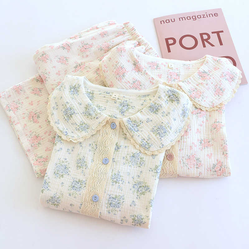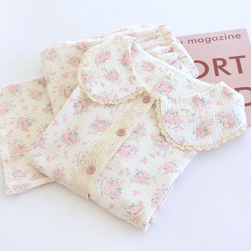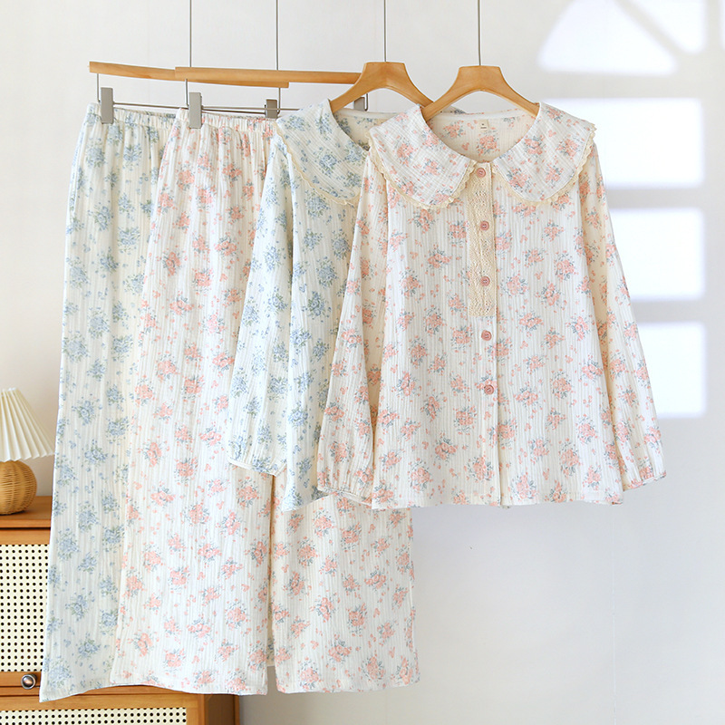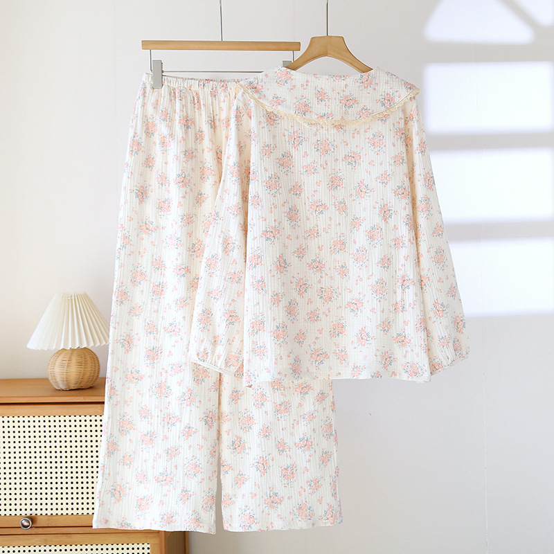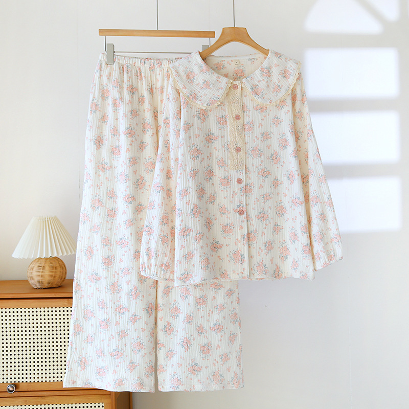 Cotton Floral Sweet Long-sleeved Trousers Pyjamas Suit