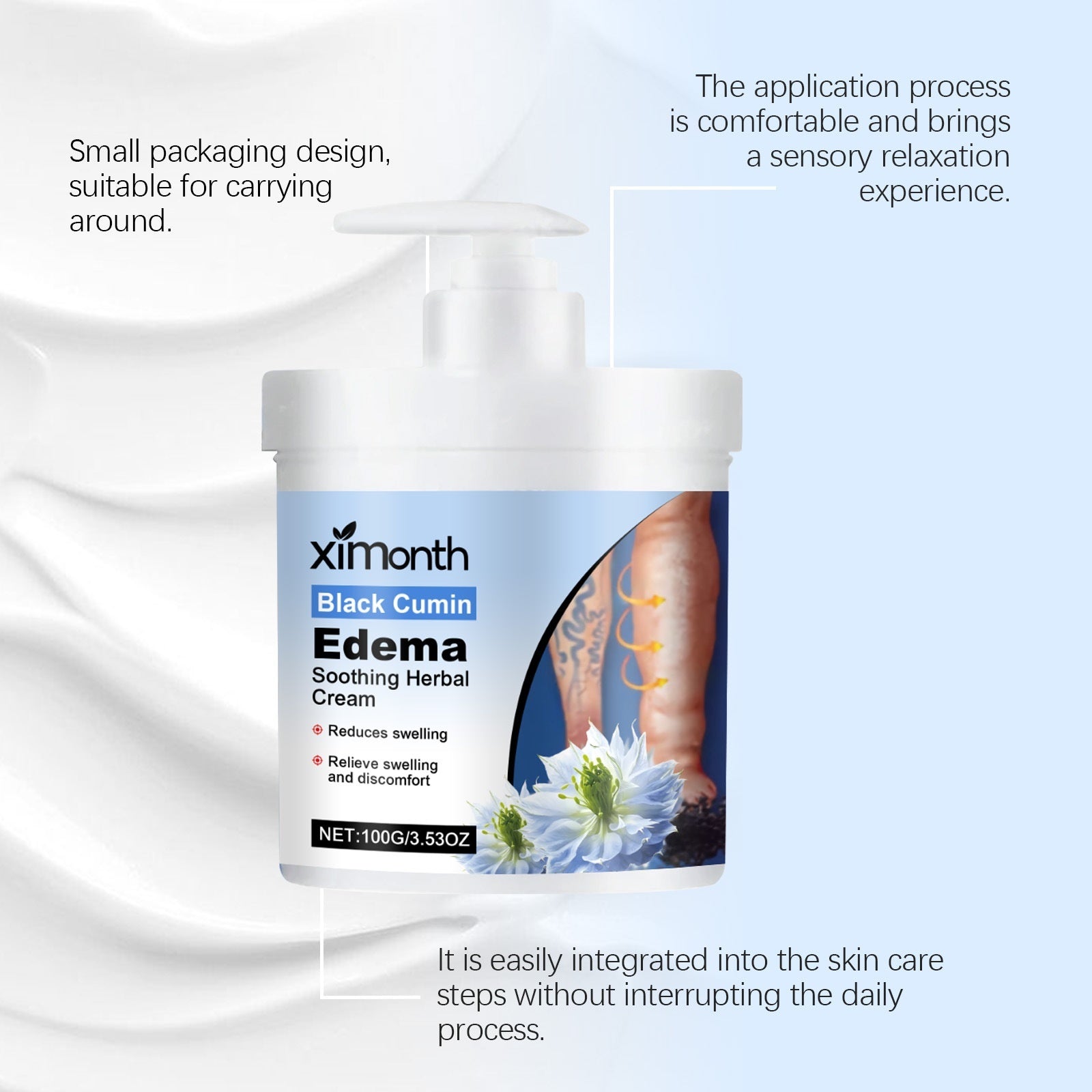Xi Month Leg & Neck Massage Cream is expertly formulated to reduce swelling and promote circulation in targeted areas. Its soothing texture allows for smooth application during massage, aiding in the relief of tension and discomfort while enhancing skin softness and elasticity. Regular use supports improved skin texture and a refreshed, revitalized feeling, making it ideal for those seeking effective care for legs and neck after prolonged strain or swelling.