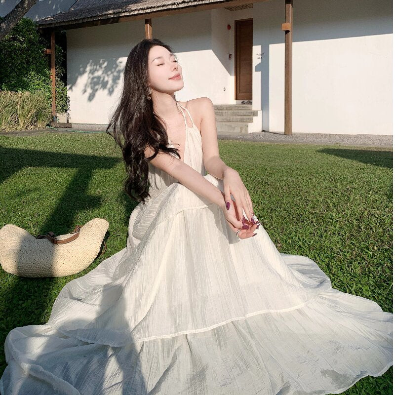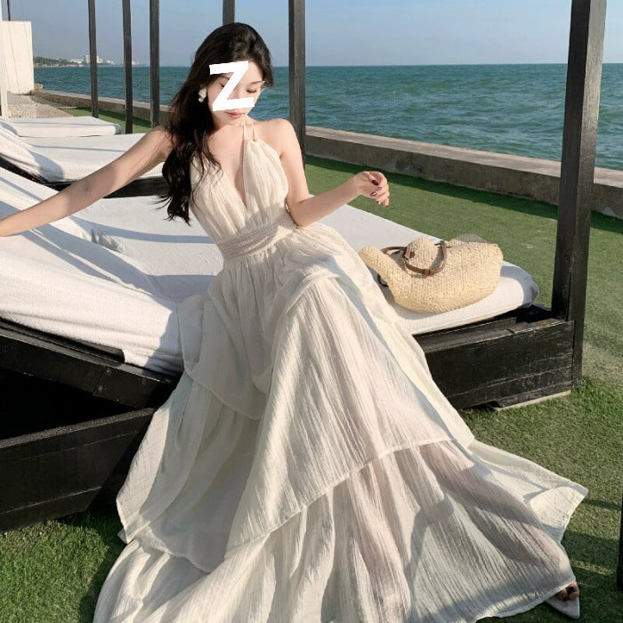 Deep V New Patchwork Slim Fit Spaghetti Straps Tiered-Ruffle Long Dress
