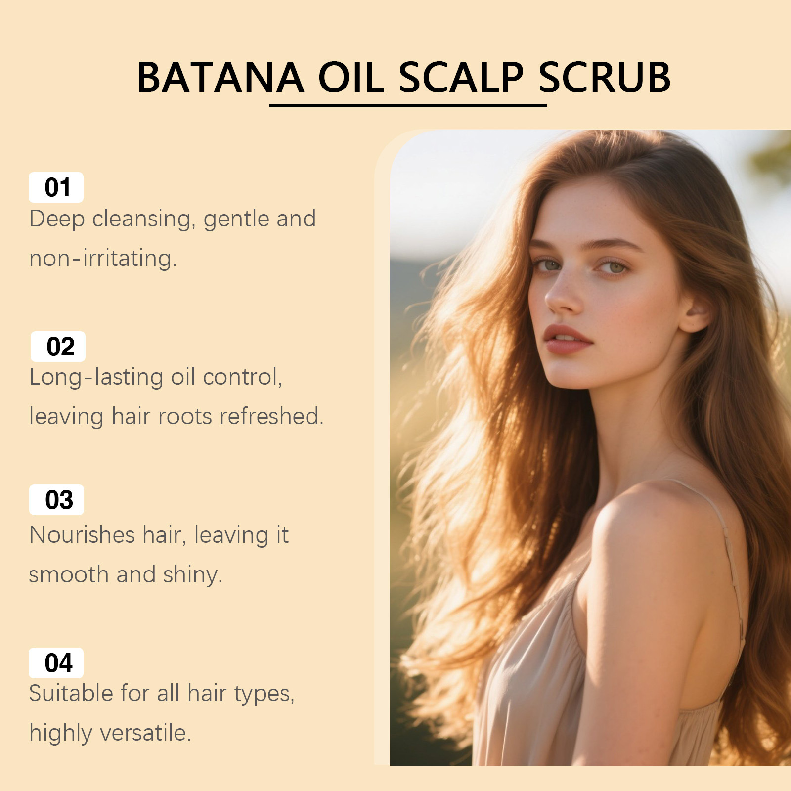 This scrub effectively removes dirt, excess oil, and product buildup from your scalp, helping to restore a clean and balanced environment. At the same time, the deep hydration from Batana oil works to soothe dryness, reduce flakiness, and calm irritation, supporting a healthier scalp feeling.