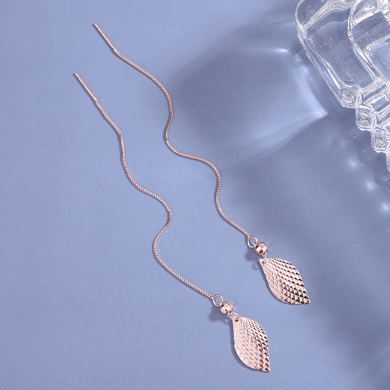 S925 Sterling Line Shiny Tree Leaf Earrings