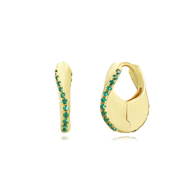 Sterling Silver Needle Street Fashion Geometry Pattern Round Rhinestone Earrings
