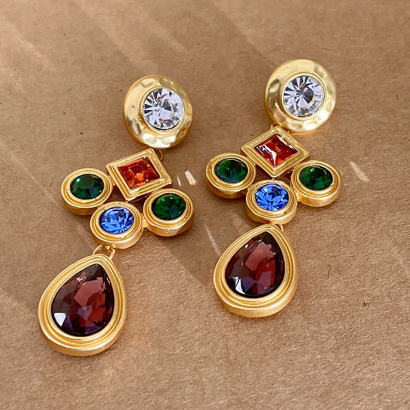 Shaped Red, Green & Blue Crystal Earrings